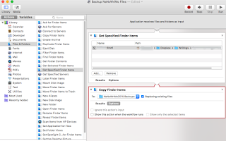 In addition, since it's not often a good idea to keep all of your eggs in one CloudAge™ Basket (that is, what happens if Dropbox gets hacked? Or if their internal controls are a little lax and their CTO got fired and unleashed a WormOfDoom™ on their server farms? Or Aliens invade from Pentax V? What about the Aliens, man?! ... it will help if you hear Jeff Bridges' voice as Flynn from the original Tron, here), I also whipped up a short Automator application that will copy my NaNoWriMo project from my Dropbox to a backup folder in my Box account. What I did here was open Automator (in the Applications folder, usually), dragged the Files & Folders->Get Specified Finder Items action and clicked "Add" to put my NaNoWriMo file as the input, then dragged the Copy Finder Items action and selected the backup folder location (as noted, on my Box drive). You could substitute a local external drive, a burn folder, or a different service of course; in addition, it would be fairly straightforward to chain another action together, to make multiple backups every time. Since I have a pretty robust backup strategy already in place, I don't necessarily bother with the most paranoid parts of my mind. If you're not comfortable with just one backup, however, modifying this to back up to multiple locations should be pretty easy.