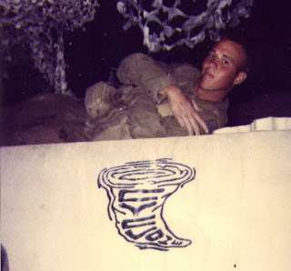 The author atop his tank, just before going to sleep on 23 FEB 1991.(Continued: A Sabre, Drawn)