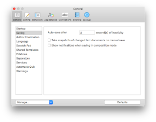 Another way is to tell Scrivener to take Snapshots of changed documents on a manual save, and then hit Command-S or Control-S, or select “Save” from the File menu. To tell Scrivener to do this, open the Preferences, click on the General tab, and click “Saving” in the left pane. In the right pane is a checkbox for “Take snapshots of changed text documents on manual save.” Click that checkbox on, and every time you manually save (via Command-S/Control-S or via “File->Save”) Scrivener will create a new Snapshot for each changed text document.It is also possible to use these commands to create Snapshots of multiple documents at once. Let’s say you’ve decided that you want to work on one chapter today, and there are several scenes in that chapter. You know you may need to work back and forth on several scenes—or, you are like me and you like to edit in Scrivenings mode—and you want to Snapshot them all before starting. You could click on each one, hit Command or Control-5 (or Command or Control-Shift-5) and make Snapshots of each one in turn, that would certainly work. If the documents are all at the same level, you could click on the top or bottom file in the list, shift-click the bottom or top file (thus selecting those two plus all files between them), and then create your Snapshot.