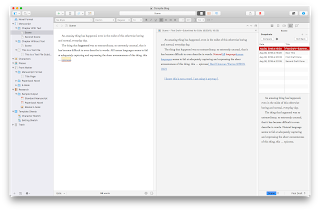 One main advantage of using a Snapshot is it gives you a touchstone for a given document’s contents. Since Scrivener does automatic saves and therefore there is no “revert” option, an excellent use for the Snapshot is to preserve the current text in a document before editing it. If you’re like many people, you have probably been conditioned to hit “save” frequently while writing (even I am conditioned this way, though I am slowly un-learning this habit). Since Scrivener does that part for you, as do many other current software programs, manually triggering a “save” isn’t really that important. Because of that, however, Scrivener doesn’t really have any way to “revert” changes (Word, Pages, other apps will do this, essentially by discarding the currently-open document and reloading it from storage).