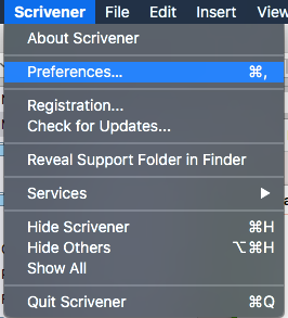 Auto-save in Scrivener is always-on, but the amount of time it waits before saving is configurable, and it also offers a couple of options for the writer who doesn’t particularly care for auto-save (I know there are some, although I am not among them).To access the settings for both auto-save and automatic backups, open a project in Scrivener and select the Scrivener menu, then click “Preferences …” (or, hold the command key and type a comma):