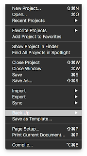 The "Back Up To…" option will prompt you (via a standard "Save" type dialog box) for a location to save a backup, as well as a checkbox option to Back up as a ZIP file. "Back Up Now" will create a manual backup using the settings in the Backup tab of the Preferences. Even if you have automatic backups disabled, it will use whatever other settings are set in the Backup tab (whether to ZIP or not, whether to use date in the filename or not, and the location for backups) and create a backup there. Keep in mind, however, that if you are using automatic backups, a manual "Back Up Now" create a backup of the project just as if it were automatic, so if you are at the limit for number of backups it will delete the oldest to make room for the manual backup.