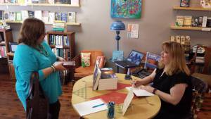 We had so much fun! Thank you all who came out to spend time with me and get some books signed! The gang at Books & Boards were so terrific as were the girls at Three Sisters Pie Co. I can’t wait to do it again!