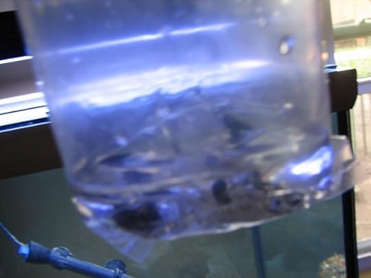 He’s in the 20 g., more pics of that to come later, so the water is still cloudy.