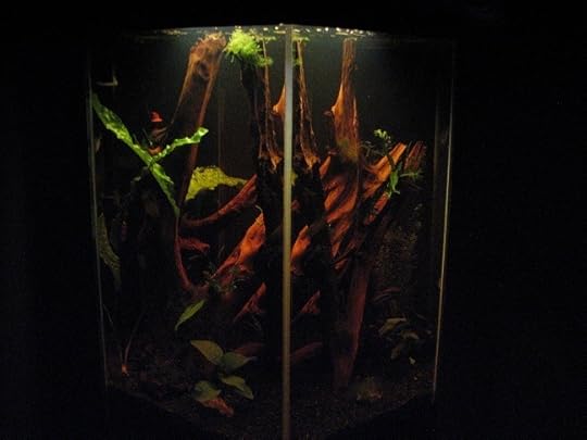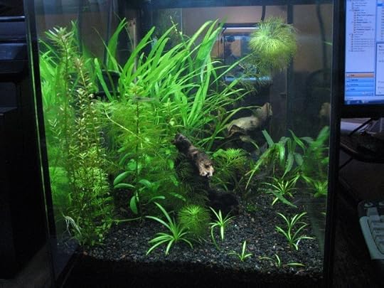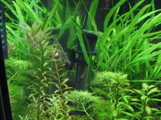 But not nearly as bad as when he was introduced to the tank, yesterday, after putting the Eco-Complete substrate in. Granted, for some reason the water didn’t get quite as murky with this 20g as it did with the 55g hex. (also in the above shot, the assassin snail of doom!)