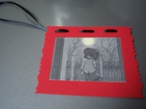 From here, I raided my craft supplies – cardstock in a variety of colors, ribbon, beads, scrapbooking die cuts. I looked for anything that might go with what I was making, which at this point was still in question. I had originally thought book marks but as I sat down to put it all together, I knew I was making Christmas ornaments.