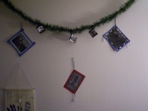 This row of pictures became my smallest ornaments. I cut in between the pictures and then added the ribbon.