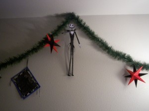 We added some black and red stars and Nightmare Before Christmas ornaments (printed from the Disney website).