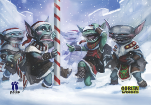 Paizo as a company has a variety of winter traditions, from the seemingly annual “we all got snowed in at the office and have to live off whatever food’s in our desks” to the far more pleasant “it snowed half an inch so I’m panicking and working from home.” There’s also the ever-popular Paizo Holiday Card with its absurd holiday-themed art and discounts for anybody with a paizo.com account. But by far the biggest holiday tradition for us is the Paizo Holiday Party. Once upon a time, that took place in the house of our owners, Vic Wertz and Lisa Stevens–a structure that is possibly the world’s greatest shrine to Star Wars not actively owned by George Lucas. Now that the company’s grown so much, however, we have it at a winery (with this year’s party featuring the first official goblin wine!). Though we’re all a bit older and calmer than we used to be–I was 20 when I started at Paizo eight years ago–putting all of us in a room together still results in some serious decibels, especially once you add in the traditional white elephant or secret Santa gift exchanges.