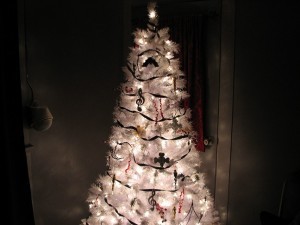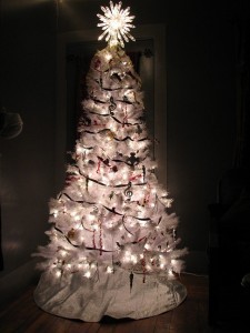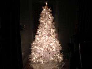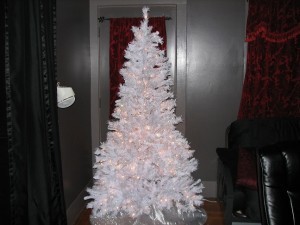 I pondered a few different colored trees ranging from black, to red, to purple to white. Normally, I’m not a white person (who’d have guessed?) so I almost dismissed the idea of a white tree. However, our living room themes are charcoal grays, deep reds and black and so, most of my favorite colors would blend in too much.