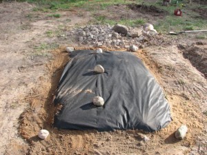 After they were mounded we took out the weed blocker! This not only has created a wonderfully mostly weed-free grave but keeps the mounded soil from eroding.