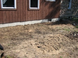 After that, we hand graded it with rakes and created a gentle slope away from the house, instead of it sloping a bit in to the house as the contractors had left it. Why they thought that was a good idea and then then gave it a sharp slope downward further away from the house is a mystery that will likely never be solved. Grr. Anyway, after many hours, we fixed it.