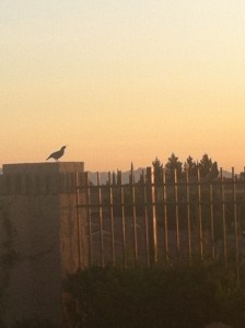 A lesson in stopping to smell the proverbial roses, I suppose. I attempted to recapture the cool weather by getting up early today (5:30) and have my first cuppa on the patio. Here’s a pic of my buddy, the little guy James and I call our Sentry. He lets the other quail know if it’s safe to enter the yard or not. Today? Not, as I was there.
