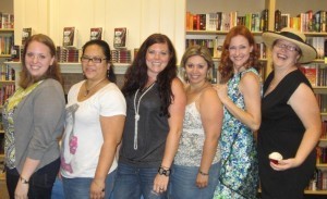 That’s Allison, Heather, Robyn, Nicole, me, and Jocelynn Drake … who’s trying to take me down with a poisoned apple. (Okay, it’s just a cupcake, as it was Nicole’s birthday and the signing turned into an impromptu party (Sorry, Joseph-Beth!) but look at that smile on her face. It has mayhem written all over it!)