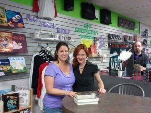 Finally, my first signing in Dallas. And look who I encountered walking in the door… reader Wendy, whom I met last year at the Readers&Ritas event in Dallas. She posed with me by the downstairs display so I wouldn’t have to do so alone.