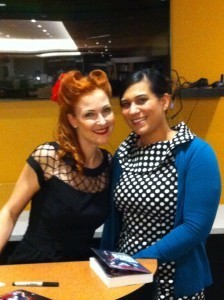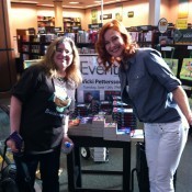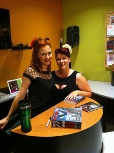 And finally, the signing. No chicken story today (thank Gawd) but plenty of laughter, and lots of questions about Celestial Blues and Zodiac. Shauna and I also realized that I inadvertently wrote THE TAKEN just for her – rockabilly + angels…she has the more gorgeous ink on her back, and it happens to be angel wings. (Great minds, right Shauna?)