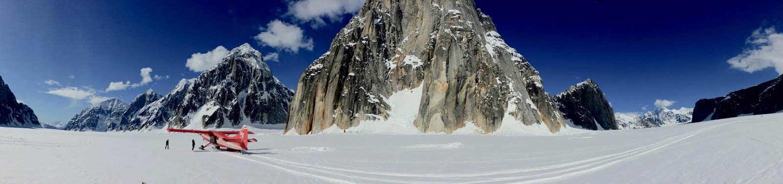 Follow the line to those few little dots in the left middlish part of the picture. That's Denali base camp!