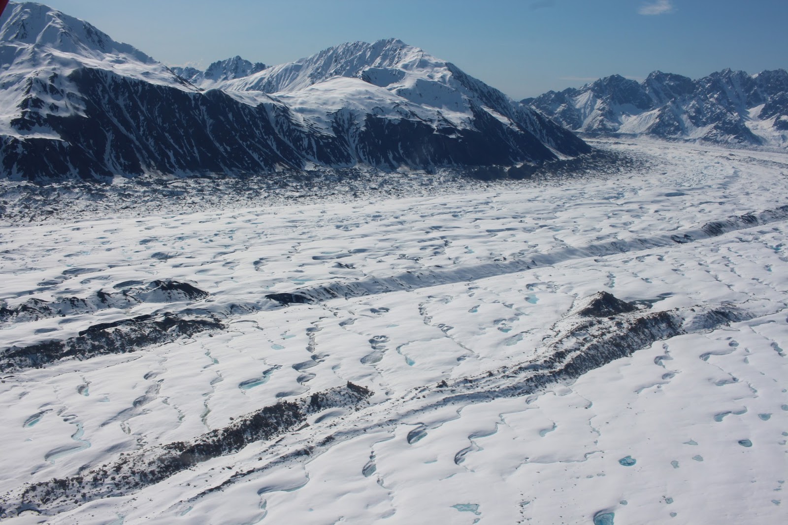 We flew low over glaciers.