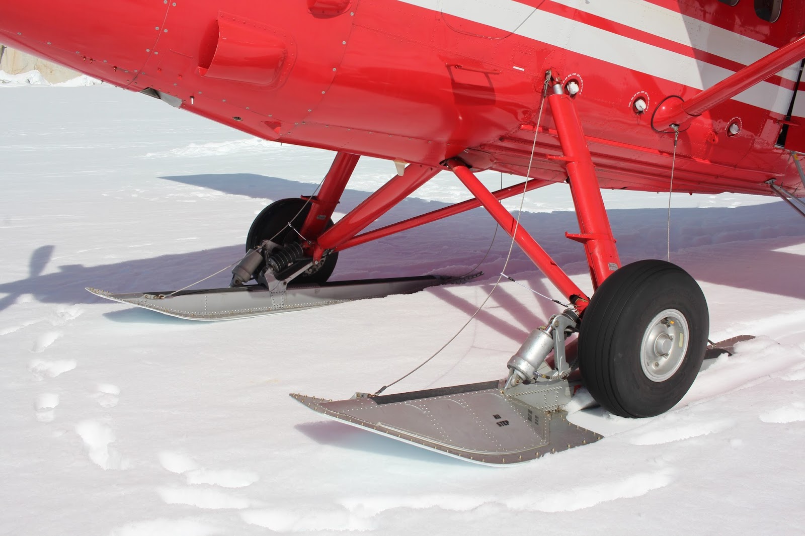 The plane landed on skis.