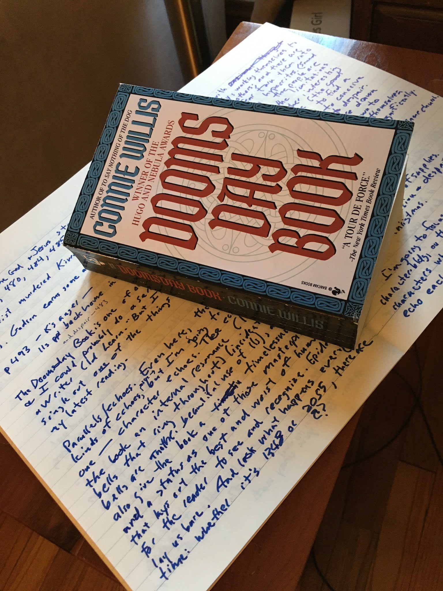 Connie Willis's Doomsday Book is one of my favorite books, and also one of the best books ever written. It is a masterpiece.