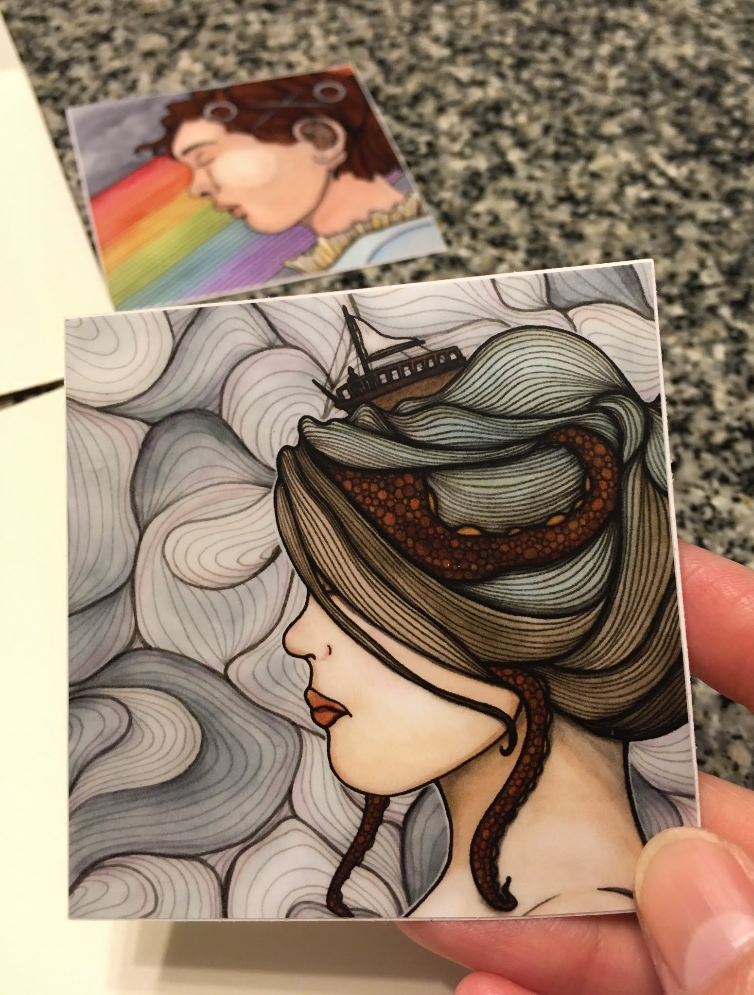 I'll share some pictures of my stickers… And include, with some of them, samples of my right-handed writing, so you can see what I mean about that. Anytime you see handwriting, that's my right-handed work. And anytime you see a sticker created by an individual/independent artist, I have gotten permission to share it.