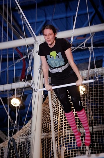 It's great. And it gives you an excuse to walk around town wearing strange socks with chalk all over your pants. TSNY Beantown, folks. They also have classes in silks, static trapeze, trampoline, lyra (aerial hoop), and Spanish web. Their classes are suitable for all levels of ability; I had certainly never been on a trapeze when I went the first time.