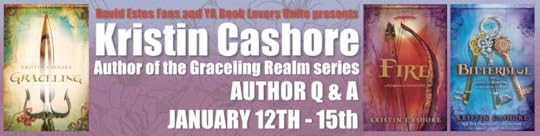 If you want to follow along with my Q&A this week at David Estes's Goodreads group, or even join in, here's where you need to go. Some explanations of the setup: at the top of that page is the questions people have been asking me, listed in bold. The wonderful Jenny, who is keeping things organized for me, continues to add new questions to that list as people ask them, and she also crosses out questions as I answer them. If you want to add a question, you need to join the group, then add a comment that includes your question. (Click on "post a comment.") Jenny asks that you put your question in bold so that it's easier for her and me to find it, and that you use spoiler tags if there's a spoiler in your question. I answer the questions by adding my own comments, which means that you need to scroll through the comments to find my answers. Yesterday, I answered eleven or twelve questions, which start around message 45. I'm about to head over there now and answer a bunch more, which, by the looks of things, will probably start around message 69 or 70, unless you all go posting questions right away before I get started (which you should feel free to do!). :o)