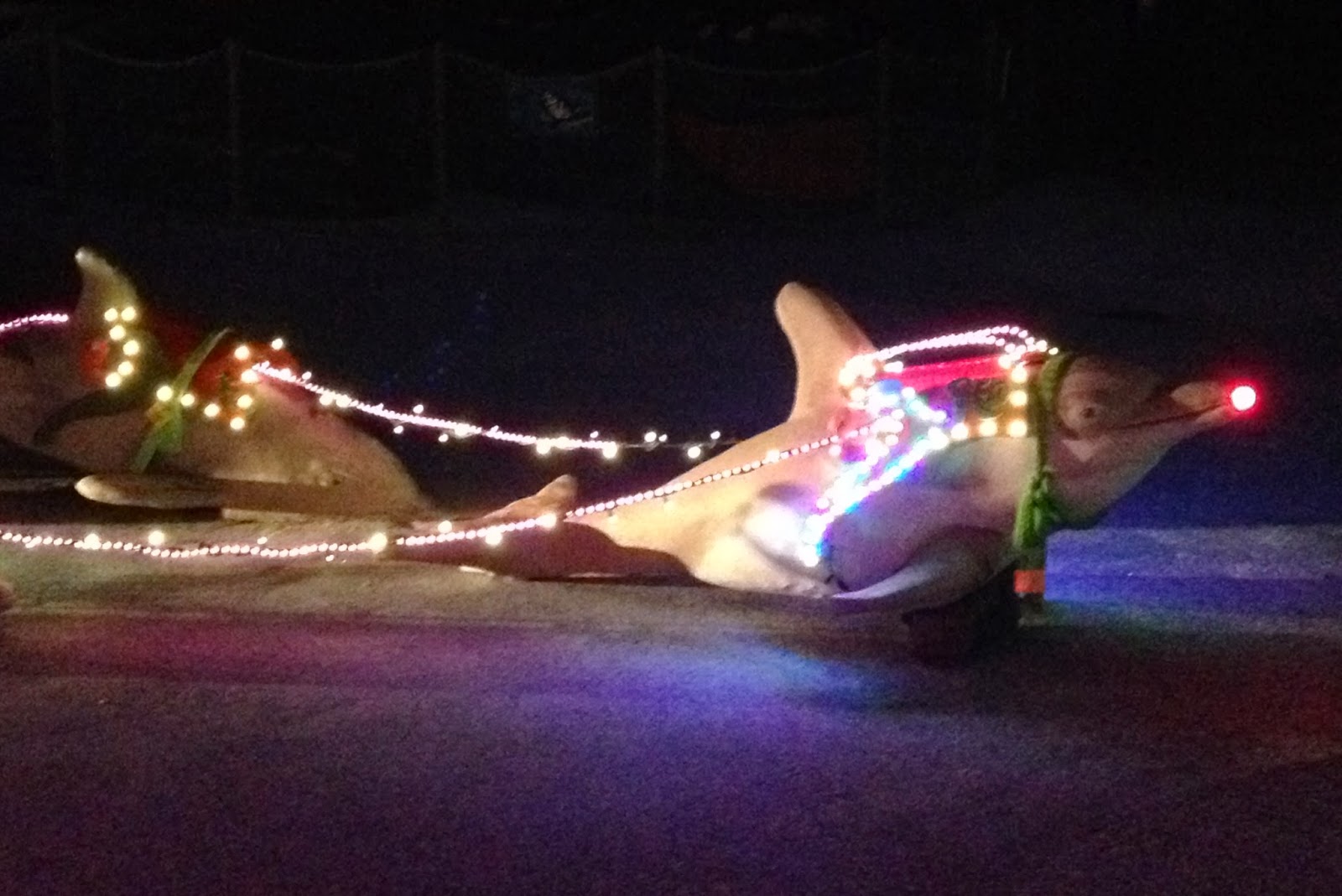The Heart of Robin Hood. I saw this show recently at the American Repertory Theater here in Cambridge, Mass, and (spoilers ahead!) you know what, while I didn't entirely believe in the characterizations of Robin Hood or Marion (Why would she love him exactly? He's a violent, murdering thug! And why would he love her? He saw her once!), the staging is something special. On the stage roof and extending over the audience is the most enormous oak tree, and the actors are essentially aerialists. They enter and exit by climbing or descending ropes OR by sliding down this rather extraordinary steep slope at the back of the stage. You're sitting there watching the show and people keep suddenly appearing on stage by sliding down the back wall! The one moment when I did believe in Robin Hood and Marion's love was achieved by aerialist work. Also, randomly, the show contained the most magical and realistic snowfall I've ever seen on a stage. And it was funny, AND, there's a scene where Robin's gang uses the corpse of a man they've killed as a marionette and it is the FUNNIEST THING EVER, magnificently acted by the guy playing the corpse marionette. (My apologies to this actor; I'm kicking myself for not paying closer attention to the name of that character so that I can share the actor's name here.) Hints of a few Broadway shows – in the use of music, I found it reminiscent of Once, and in the depiction of animals, I thought of War Horse.