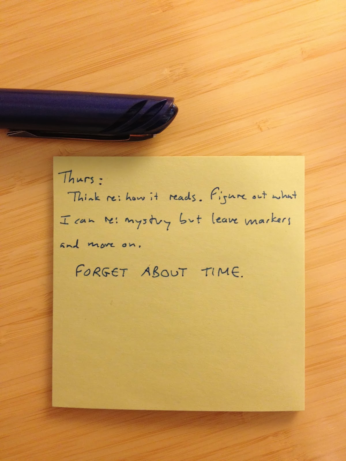 TIME" -- because dwelling on how infernally long a revision is taking does me no good