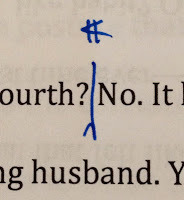 The word of the day today at dictionary.com is "pilcrow", which is the punctuation symbol for "paragraph": ¶. I'm rather fond of this symbol, because I use it frequently in my work, when I've got sentences crammed together and realize there should be a paragraph break between them, or worry that my own formatting is so messy that I'll forget to put in the paragraph break when I transcribe from my handwriting to the typed document.