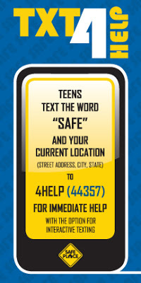 Or, to use TXT 4 HELP, text the word “safe” and your current location (city/state/zip) to 4HELP (44357). Within seconds, you will receive a message with the closest Safe Place site and phone number for the local youth agency. You will also have the option to text interactively with a professional for more help.