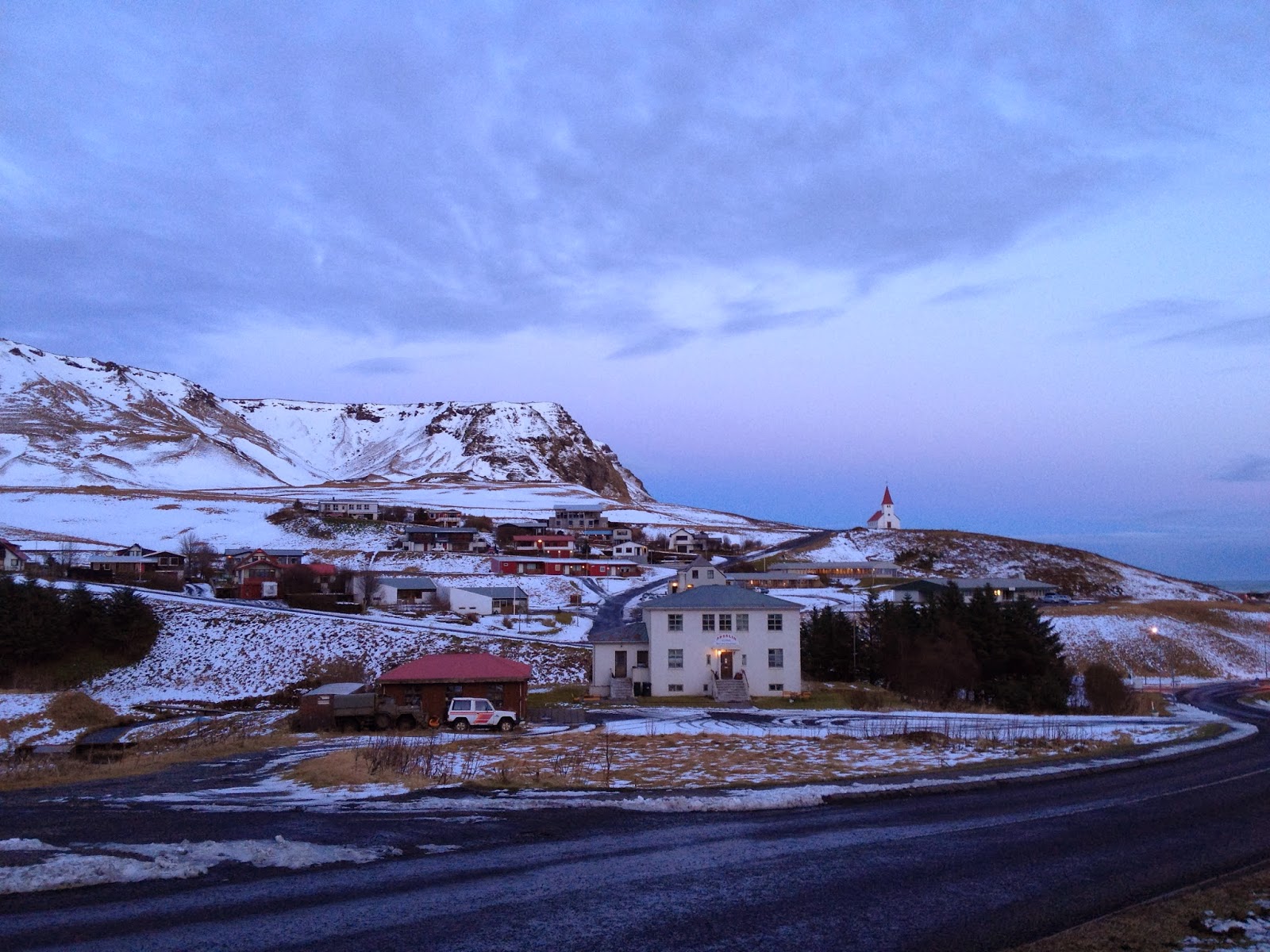 Vík. Make sure you notice in the far right, just above the land – this town is on the sea.