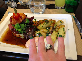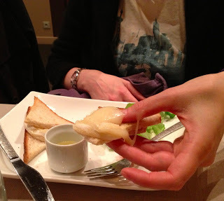 Click on them to make them big and beautiful. A few notes: No, the raw stuff was not mine – it was Gail Carriger's — she's a much more adventurous eater than I am. The gorgeous nail polish wasn't mine, either — that belonged to Annaïg Houesnard, lovely translator and interpreter.