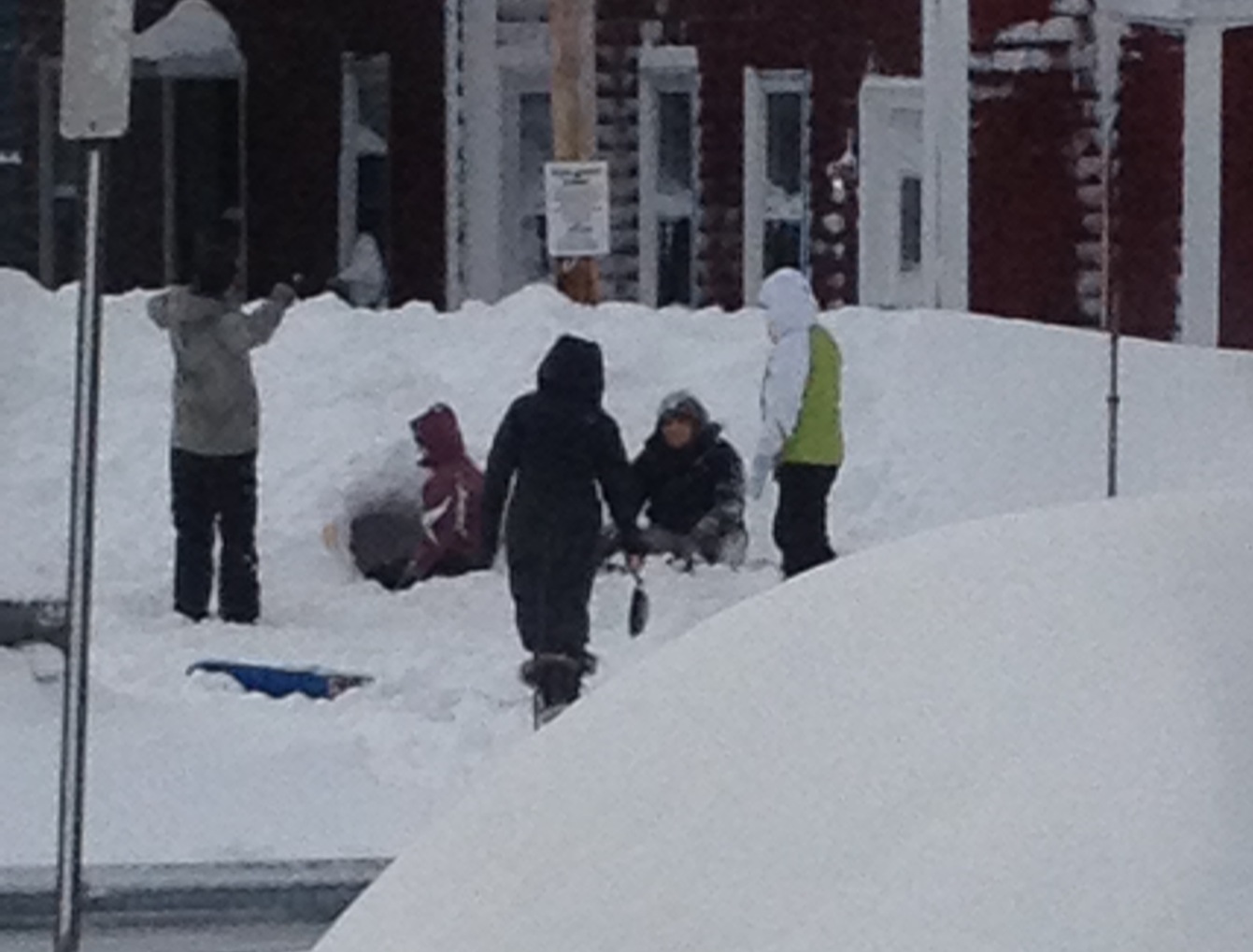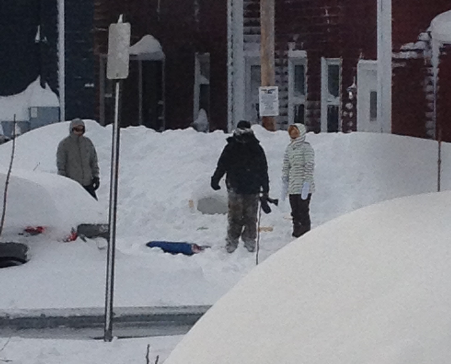 Hey guys, let's dig a snowcave inside this drift! I am burrowing into this snowbank using my arms and hands and head!