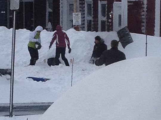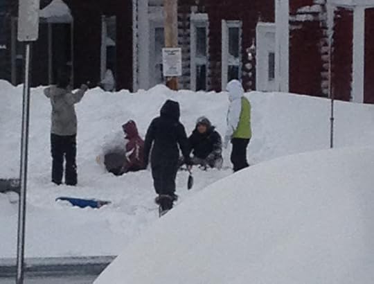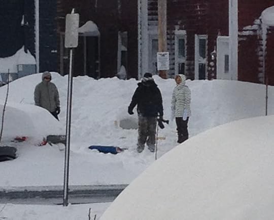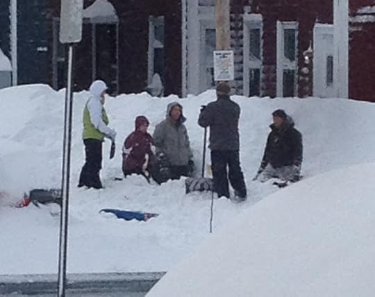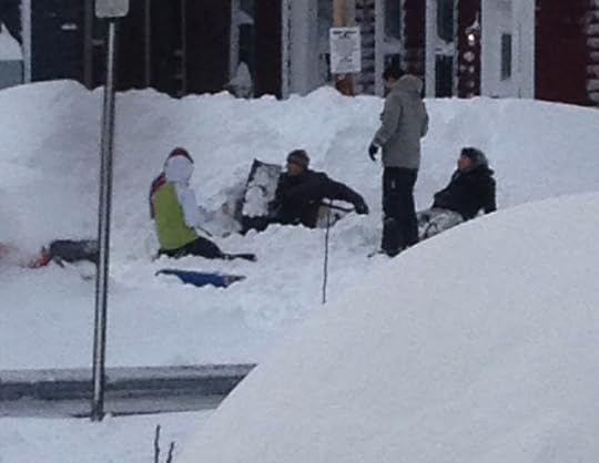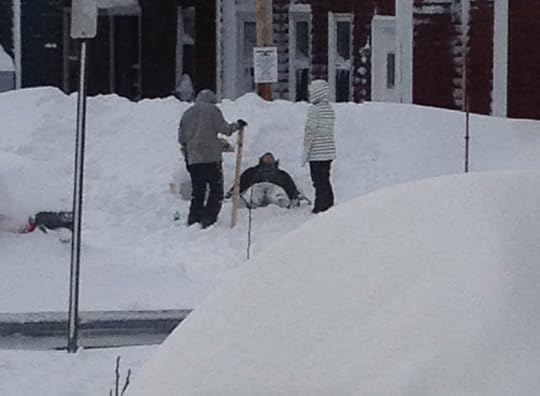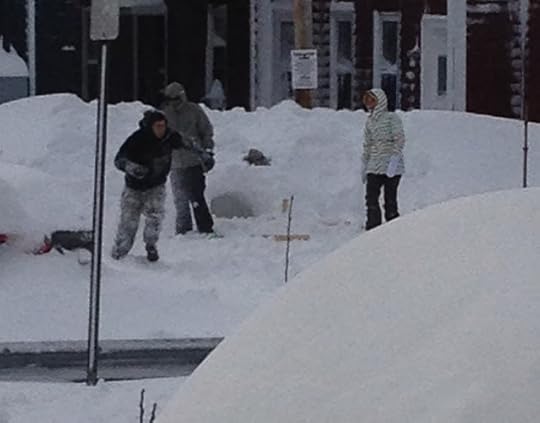 * This is a reference to The Long Winter, by Laura Ingalls Wilder. During the fall, winter, and spring of 1880-1881, South Dakota had a particularly harsh season of blizzards (beyond anything Boston has ever known). The blizzards came hard upon each other, each one fierce and crippling. The trains couldn't run, supplies were running low, there was no new food or fuel. The people in Laura's town slowly began to starve (and freeze!). So Almanzo and Cap set out between blizzards -- so dangerous! -- in search of a rumored settler at a claim some 20 miles away who was said to have wheat the boys might be able to buy to save their starving town. I won't tell you what happens, because this is Wilder's strongest book in the series, and you should go read it if you want a gripping winter tale.