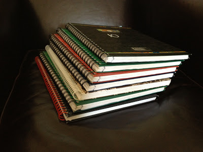 Once I've written 40 or 50 pages -- or, essentially, get to a point where I'm starting to worry about the house burning down (though I do keep my notebook in a fireproof, waterproof safe) -- I transcribe my handwriting into my Word document using voice recognition software (because I can't type much at all without pain). The transcription, like every other moment when I'm looking at my work, is an opportunity for crossing more things out (symbolically) and changing things.