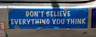 I think I've said this on the blog before: I imagine my self-doubt/hopelessness/discouragement as this guy who sits next to me in my chair as I'm writing. He's always there. He is a necessary part of the process; he will never go away; so I may as well invite him to sit in a chair beside me. Sometimes I imagine myself giving him a hug, because he's so sad and pathetic; he has nothing nice to say to me, he only knows how to insult and discourage; he is, essentially, fear. Poor, sad little guy. I say to him, "You can sit in my company, you can say whatever it is you need to say. I know you can't help yourself. I know you're so very scared. So: you are welcome here. But," I say to him, "you're not going to stop me from writing today."
