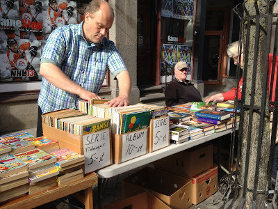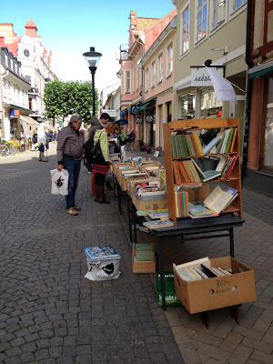 In the streets, people were selling used books in association with the book festival.