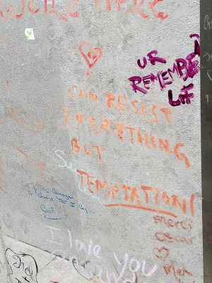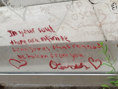 Oscar Wilde is buried in the Pere Lachaise Cemetery in Paris, around the corner from where I'm staying.