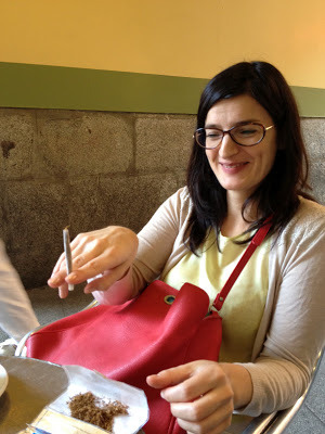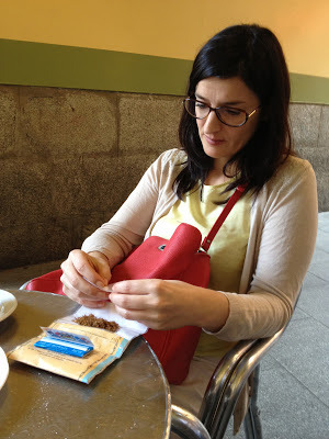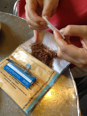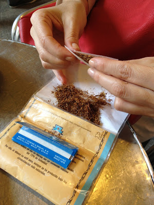 I watch Patricia roll a cigarette.
