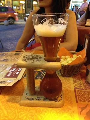 Later, it is my responsibility to drink this beverage. It's a Belgian beer called Kwak, because of the sound it makes when you get down to the narrow portion of the glass.