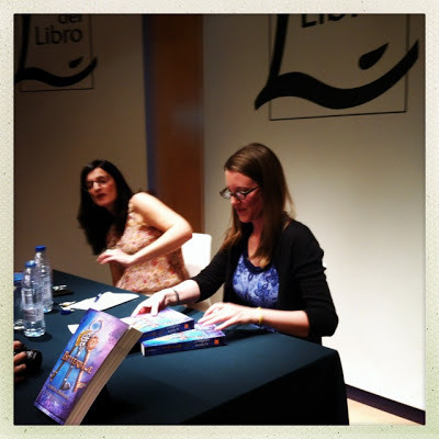 A friend expressed curiosity about what my responsibilities are on this sort of trip, so I thought I'd explain a bit more. The work thing I do most on a trip like this is press interviews. This can range from my press conference in Bologna a few years ago (to which a knight in shining armor accompanied me, then stood guard; Italy, I love you) to, more often, me in a room with a journalist (and possibly someone from my publisher, who may be serving as translator). The day might involve quite a few such interviews, with newspapers, magazines, online journals. There might be a picture portion, too, where, for example, I stand on the streets of Barcelona reading my own book in Catalan while someone takes pictures (which is of course very realistic, because I do that sort of thing a lot ^_^).