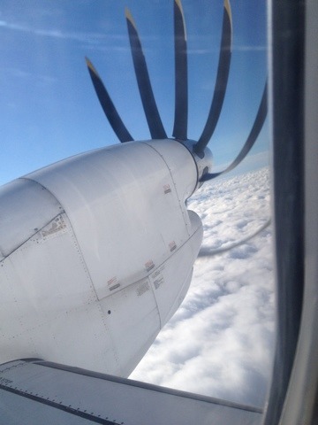 Finally we were allowed to board the plane. I fastened my seatbelt, closed my eyes, and sat there, tired and grouchy. Then I heard the sound of the propellers revving up. From that point on, I was completely happy.