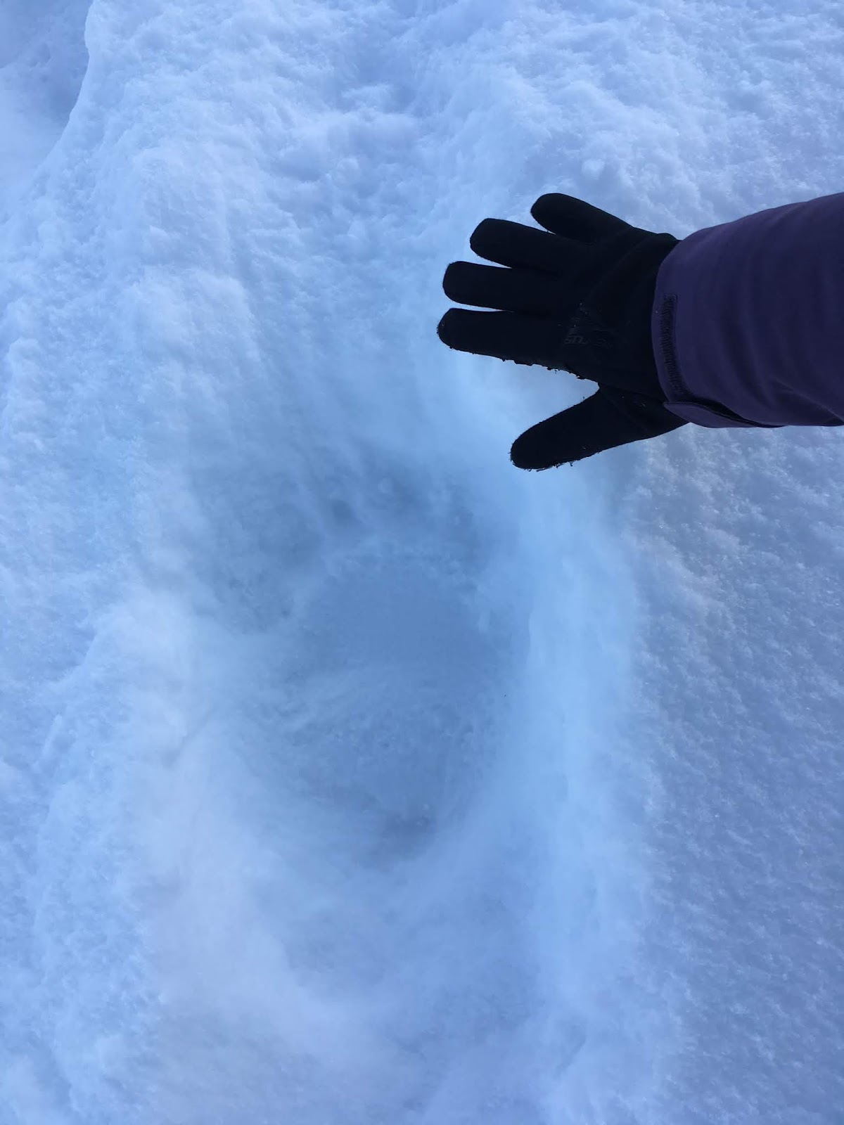 I, for one, was less interested in the evidence of human activity inside the hut, and more interested in the COMPLETELY GINORMOUS polar bear prints outside the hut. They were fresh, for this was new snow.