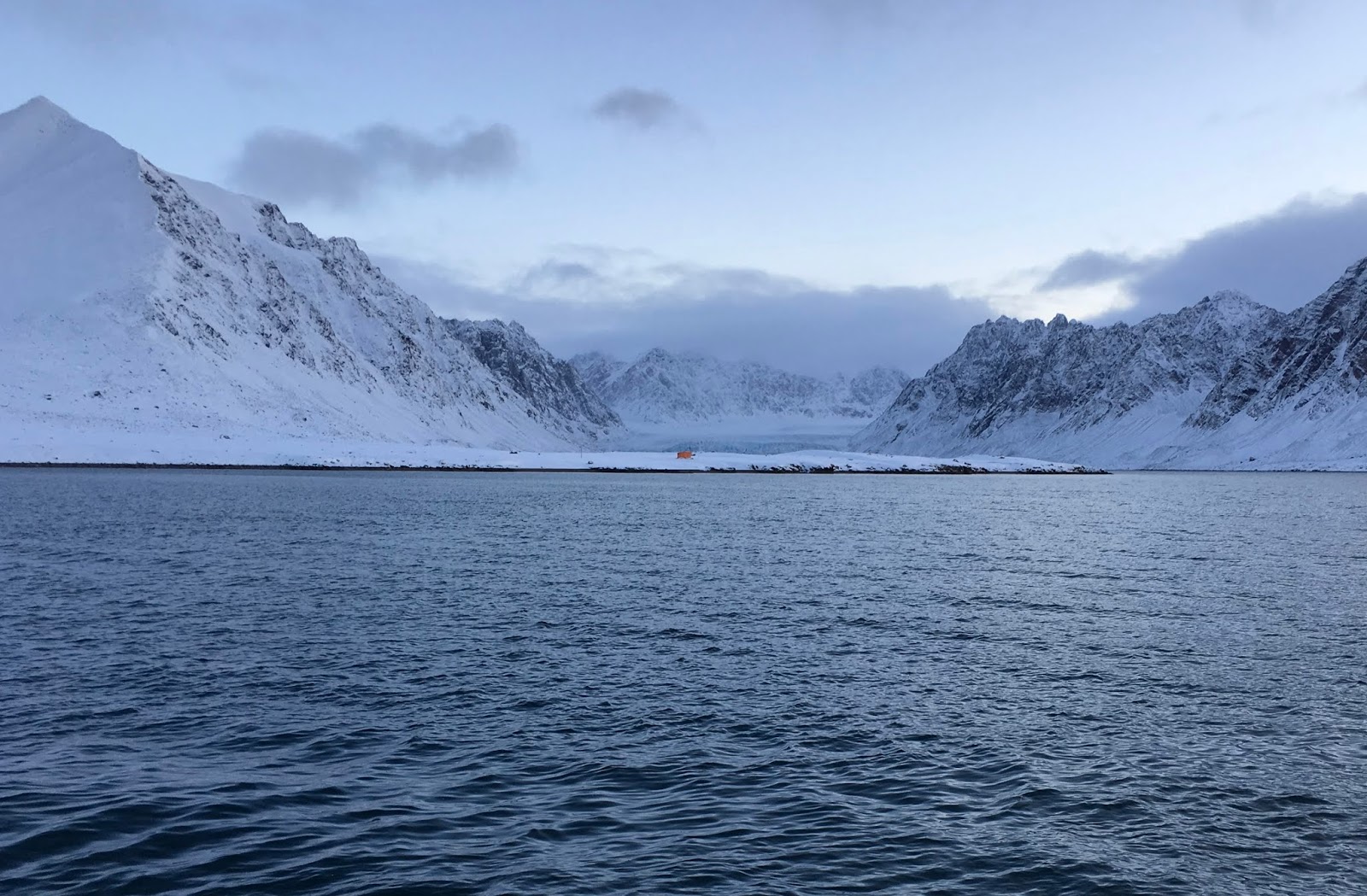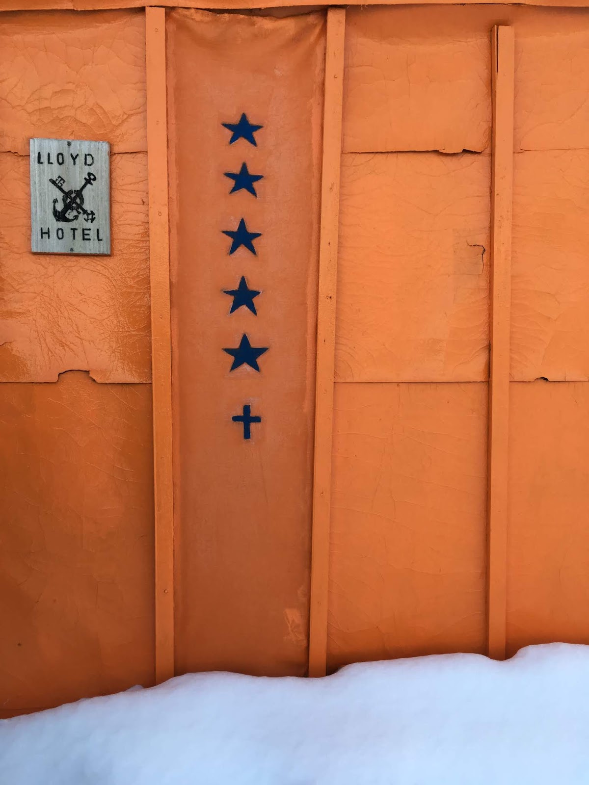 If you take a close look at the middle of this picture — maybe click on it to make it bigger and more detailed — you might see an orange rectangle. This is a hut that's been decorated and painted orange. It's called Lloyds Hotel, and it is definitely the fanciest hut on Spitsbergen — though maybe more of a tourist destination then a destination for any anyone actually seeking shelter. You can read more about its history here.