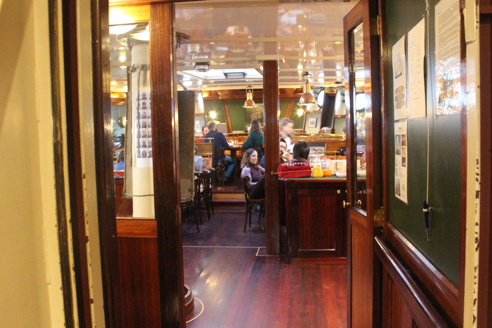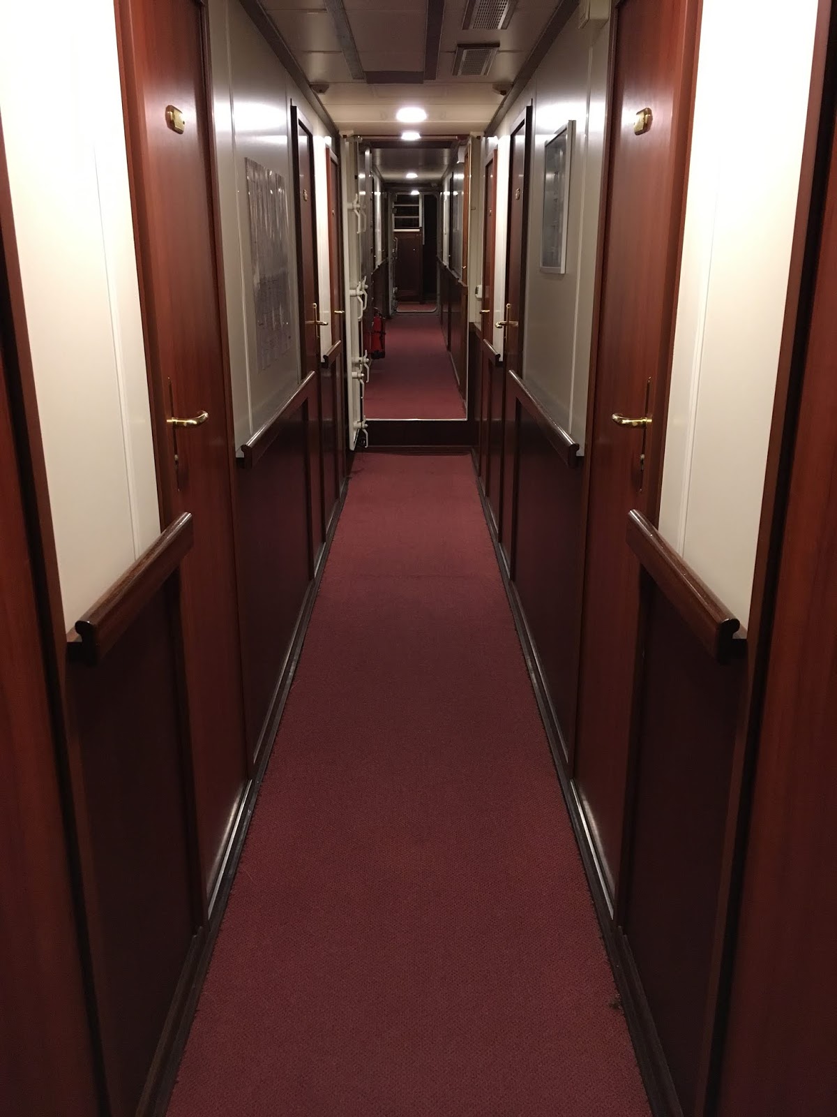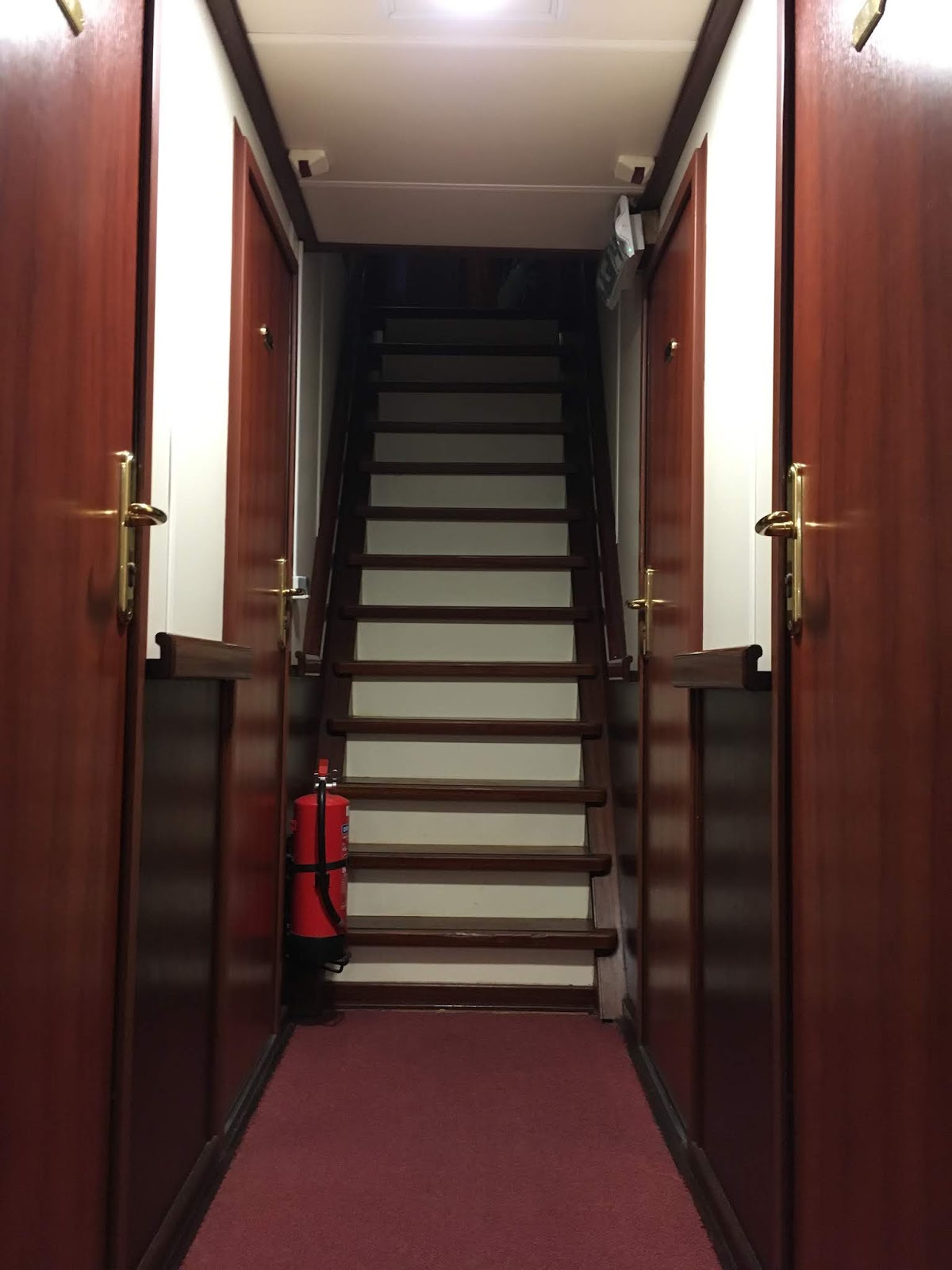 The stairs were really narrow, and in a moving ship, you quickly learned to cling to the banister.