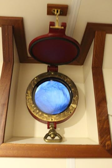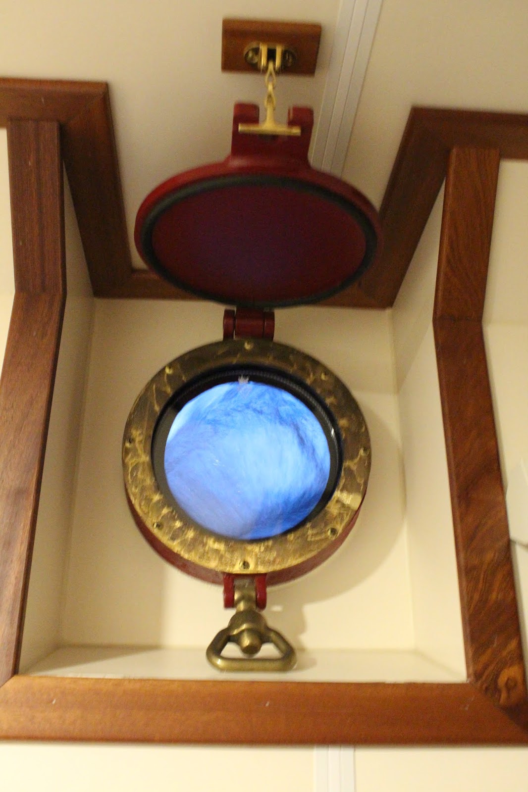 The picture below was from a day when we were full sailing (no engine, just sails) and the water was sloshing all the way up to our portholes. This was NOT an easy picture to take -- the floor was moving so much and it was hard not to fall over! I tried to wait until we were in the very trough of a wave, then snap the picture in that instant of lull, before the ship jumped up again.