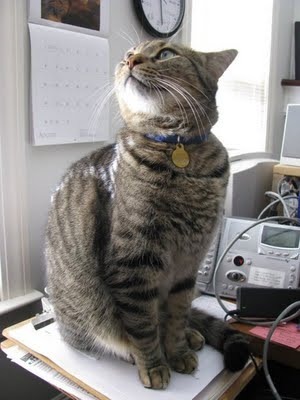 So. As I sat in my office swivel chair the other day, swiveling a bit (as one does), a hand appeared over my shoulder. I knew myself to be alone in the house, so there was only one explanation -- it was the ax murderer -- so I jumped and screamed, and even grabbed a pencil with which to STAB HIM TO DEATH.