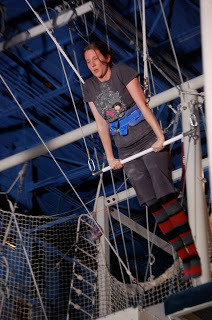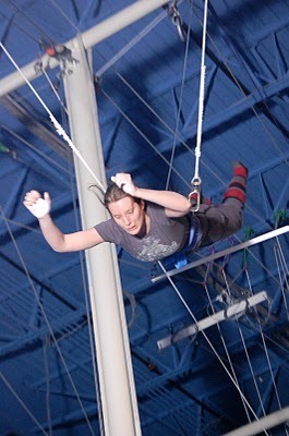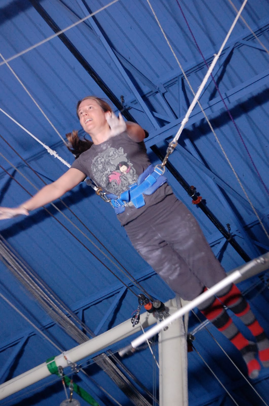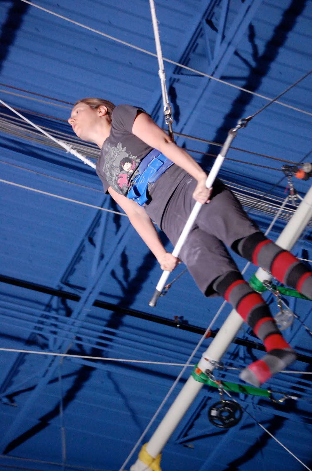 Because I've posted certain things recently on my blog, I feel it is my duty to make an announcement. Remember that at trapeze class, I've been trying to catch my pullover? (First attempt and second attempt.) Well, in my most recent class, there was a little less of this nonsense...