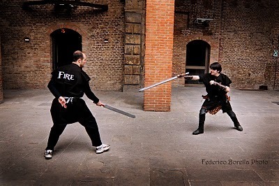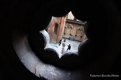 The sword-fighting took place in a courtyard adjacent to the Piazza Maggiore in Bologna's center.
